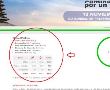 El movimiento Caminando por un Reto, que nacía en Benalmádena encuadrado en el 2º Plan Local de Salud, ha traspasado ya todo tipo de fronteras en la última edición celebrada, implicándose en este proyecto 69 entidades de distintos países, 24 diferentes organismos, 11 universidades, con una participación global de más de 30.000 personas. En base a esta evolución de Caminando por un Reto ha sido premiado por la Asociación Andaluza de Gestores del Deporte como Mejor Iniciativa o Innovación Sobre Gestión del Deporte durante 2018